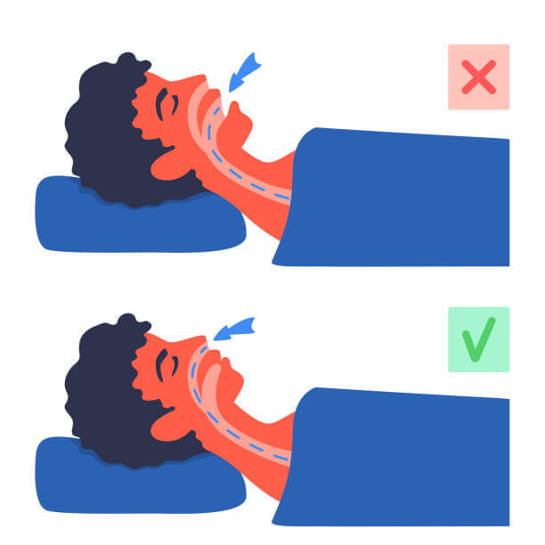 취침 전 음주 및 안정제 복용 금지: 이는 근육을 이완시켜 기도 폐쇄를 악화시킬 수 있습니다.