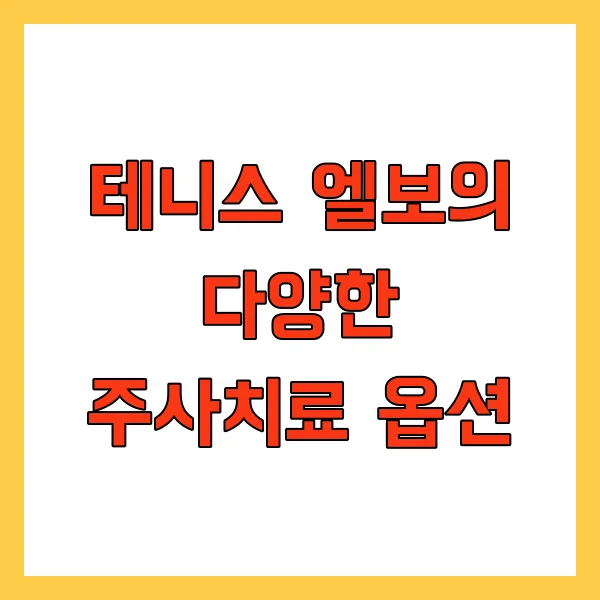 테니스 엘보의 치료에는 여러 가지 방법이 있지만, 주사치료는 빠른 통증 완화와 회복을 위해 자주 사용되는 방법입니다. 다음은 주요 주사치료 옵션들입니다:
